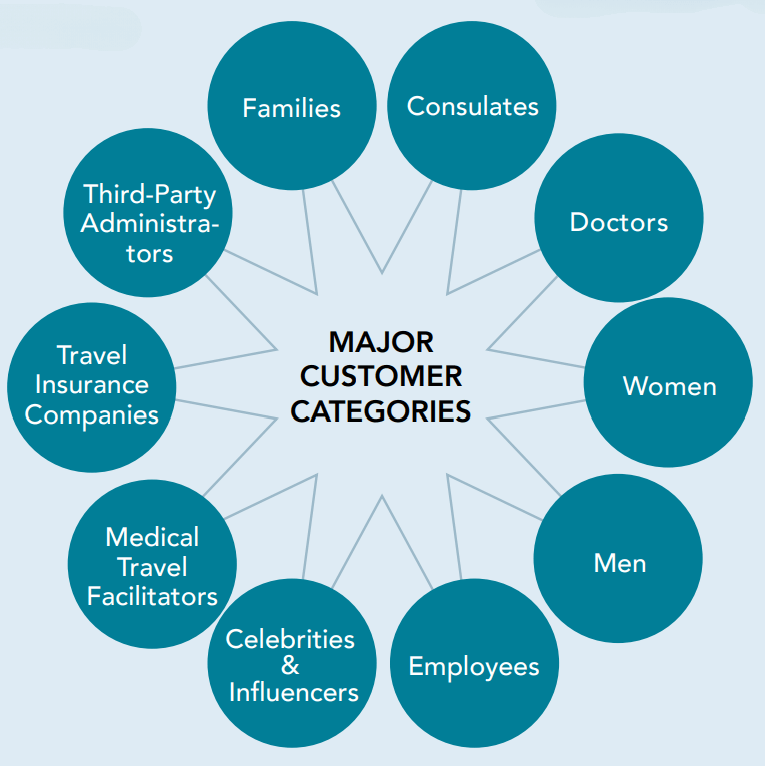 Keep in mind that you will often have several “customers.” The individual shopping for options may be heavily influenced by his or her relatives, a celebrity, or the opinion of a doctor or other healthcare professional. Sometimes a customer is referred by an insurance company, medical travel facilitator, or by a consulate, employer, or other type of agency. These too are “customers.” Think about how you can appeal to and attract each of these market segments to your business.