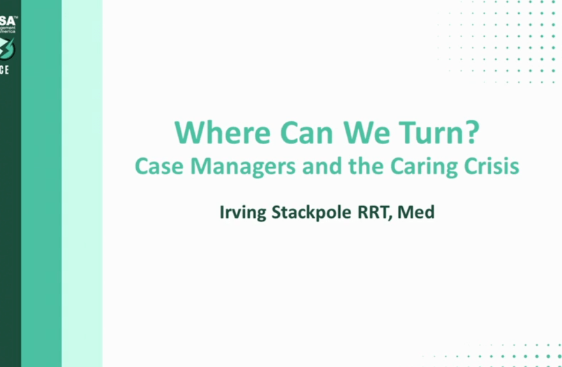 Welcome to Session, Where Can We Turn? Case Managers and the Caring Crisis. Today’s presenter is Irving Stackpole. With decades of experience as a healthcare professional, Irving Stackpole has held leadership positions for global organizations, as well as hundreds of consulting clients on five continents as president of Stackpole and Associates Incorporated. Mr. Stackpole has led many cross-continuum collaborations in health and social care, developing recognized innovations in transition of care and social determinants of health in the U.S. and the U.K. Welcome. We look forward to your presentation.
