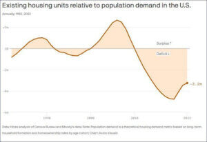 The housing market in the US has been described as a crisis, a bubble or (the most common term this author hears) “crazy.” There are too few units (supply) to meet demand. This overall supply/demand relationship has been cleverly displayed by Sami Sparber at Axios in the following graph: